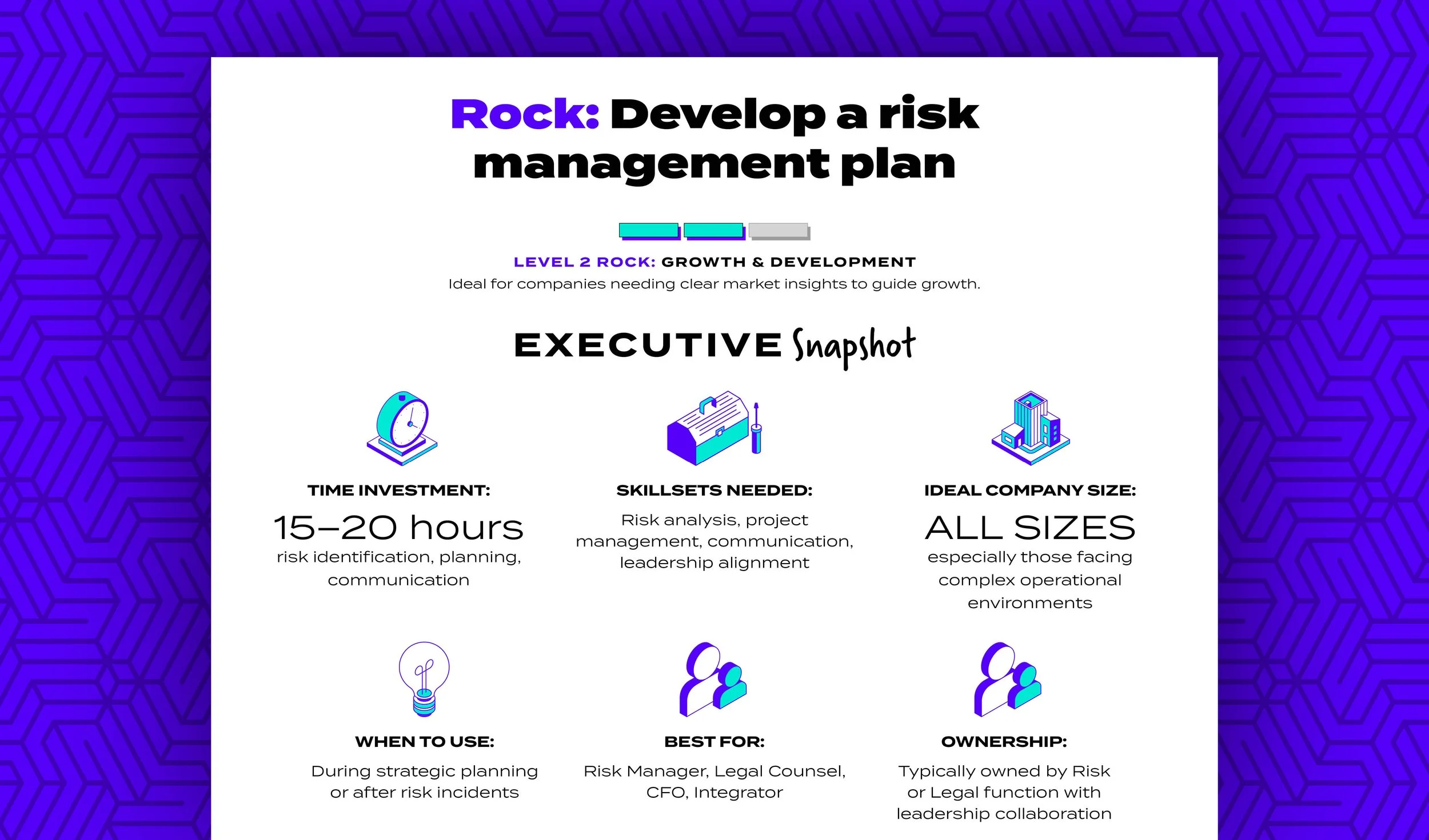 Develop a formal risk management plan that identifies, prioritizes, and mitigates company risks to support business continuity and strategic growth.