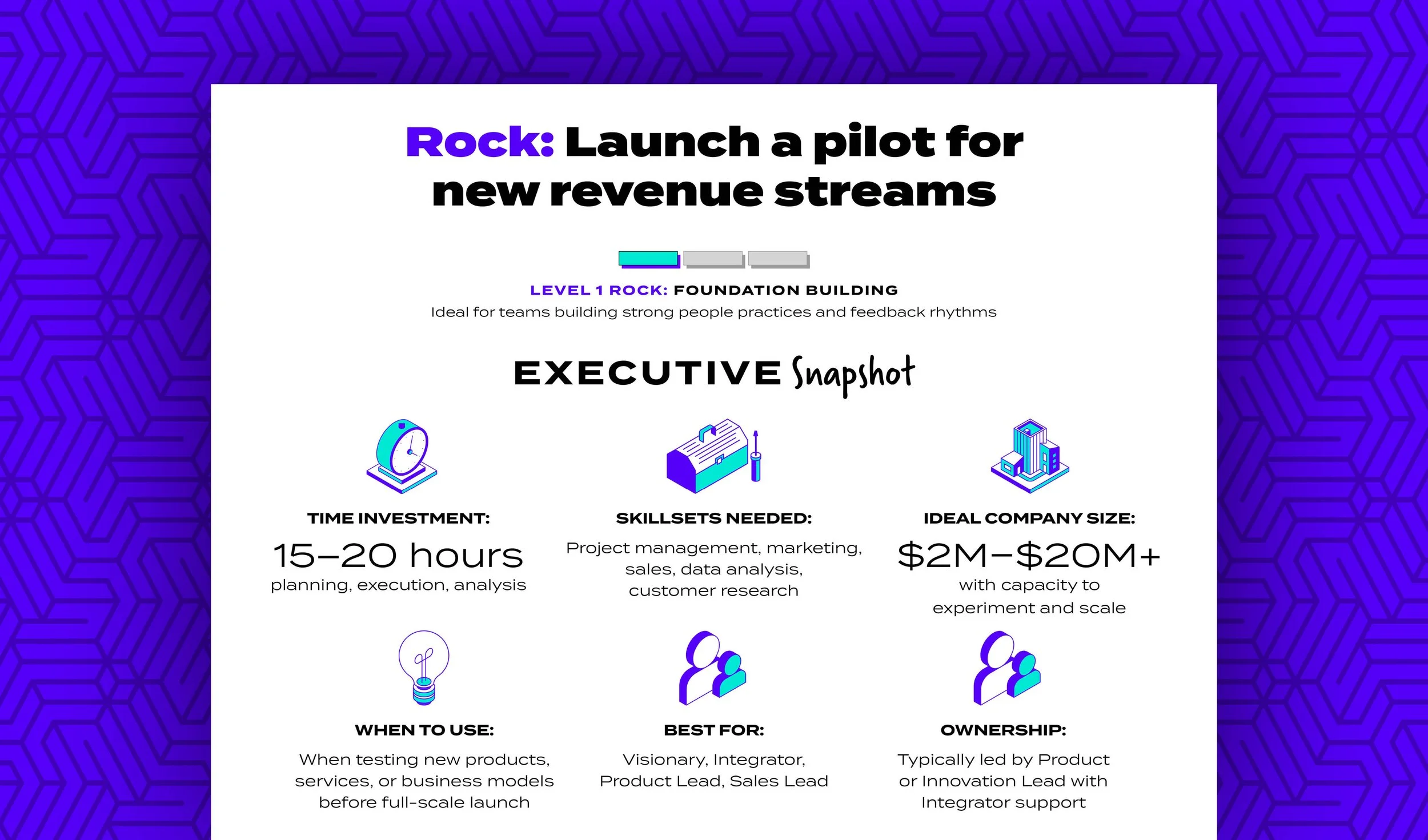 Plan and execute a pilot project to test new revenue streams, gathering early feedback and performance data to determine viability and inform future scaling decisions.